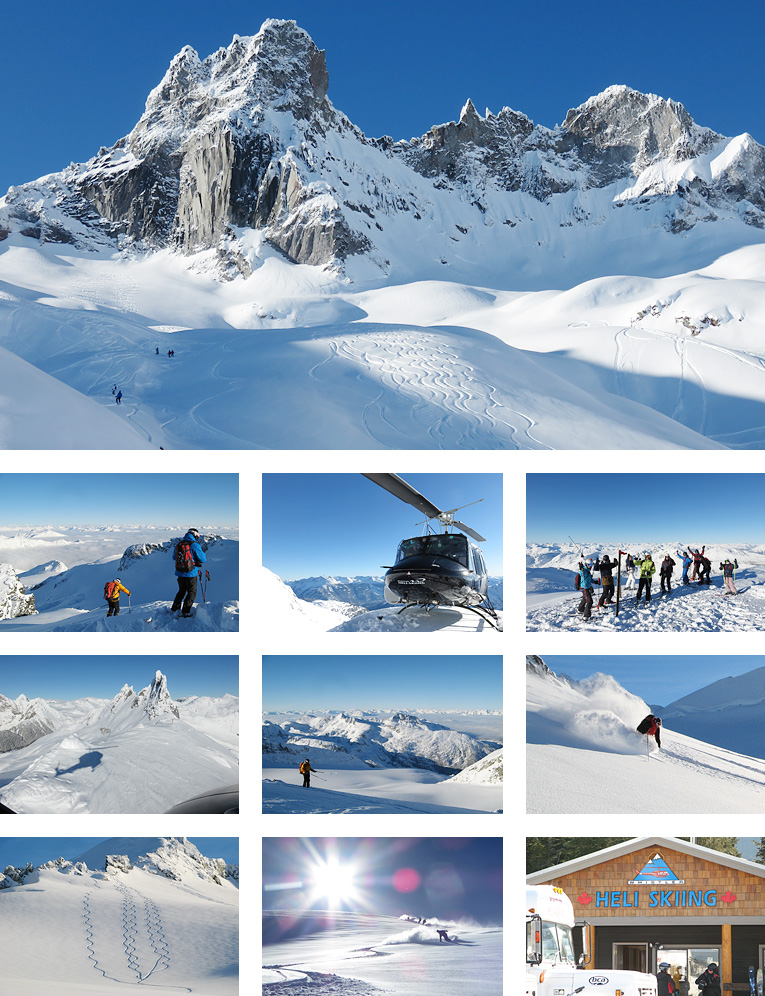 バックカントリーで有名なロジャースパスを有するグレイシャー国立公園東側にあり、パーセル山系とセルカーク山系をベースに、2,000平方kmをもカバーするヘリオペレーション。恵まれた気象状況を誇り、シーズン中の平均飛行率は98%。平均降雪量は10mにもなり、常に3m以上の積雪を維持。滑走エリアの標高差は500 ~2,100m。専用ロッジに滞在し、2日間から4日間のパッケージが用意されている。