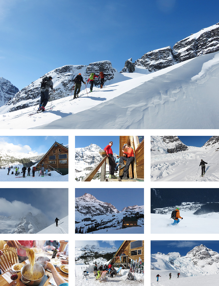 バックカントリースキーのメッカ、ロジャースパス(グレーシャー国立公園)のプライベートバージョンとも形容される山小屋。標高2,200mに建つロッジからはアルパインボール、氷河、急斜面のツリーなど、あらゆるタイプの斜面にアクセス可能。CMHを創設したハンス・モーザーと彼の友人が始めたことでも知られ、古くからのファンが多い。パッケージは7日間で、毎週土曜日集合解散。土曜日の午後1:30にGoldenの空港に集まり、そこからヘリで入山する。