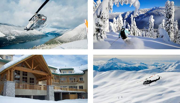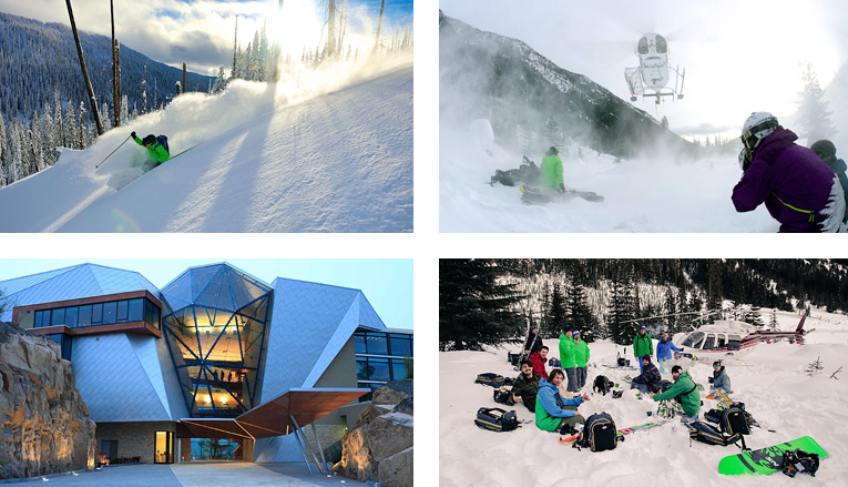 バックカントリーで有名なロジャースパスを有するグレイシャー国立公園東側にあり、パーセル山系とセルカーク山系をベースに、2,000平方kmをもカバーするヘリオペレーション。恵まれた気象状況を誇り、シーズン中の平均飛行率は98%。平均降雪量は10mにもなり、常に3m以上の積雪を維持。滑走エリアの標高差は500 ~2,100m。専用ロッジに滞在し、2日間から4日間のパッケージが用意されている。